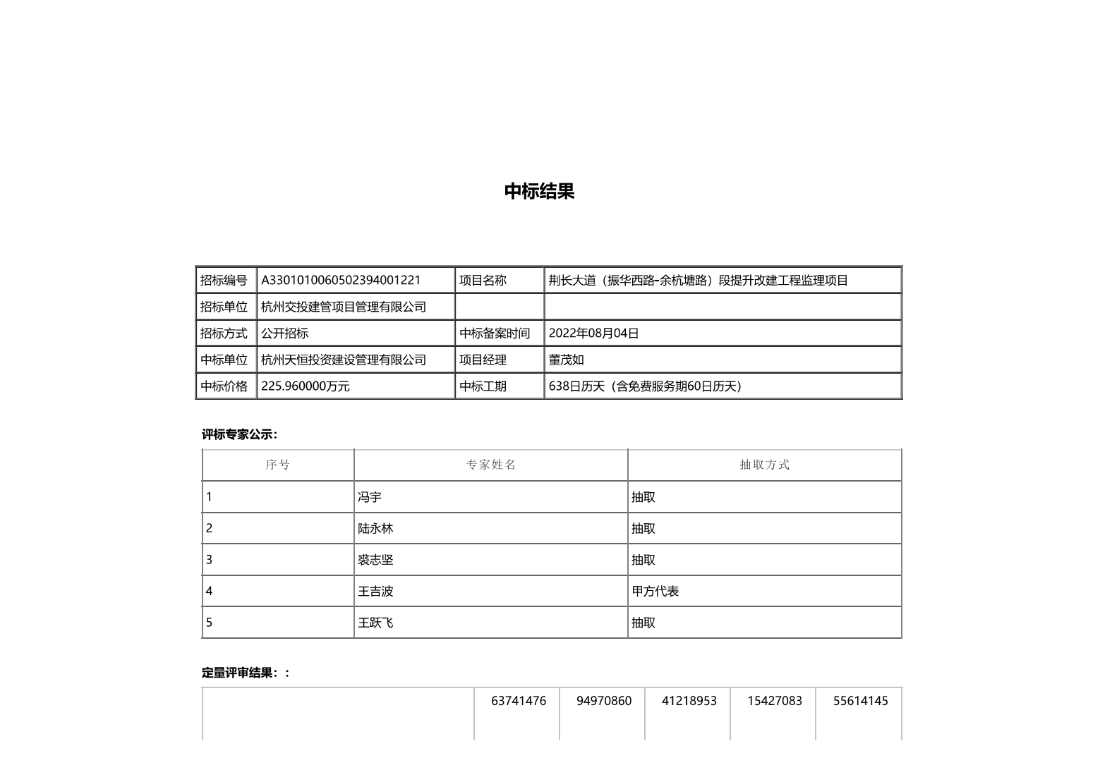 荊長(zhǎng)大道(振華西路-余杭塘路)段提升改建工程監(jiān)理項(xiàng)目中標(biāo)結(jié)果