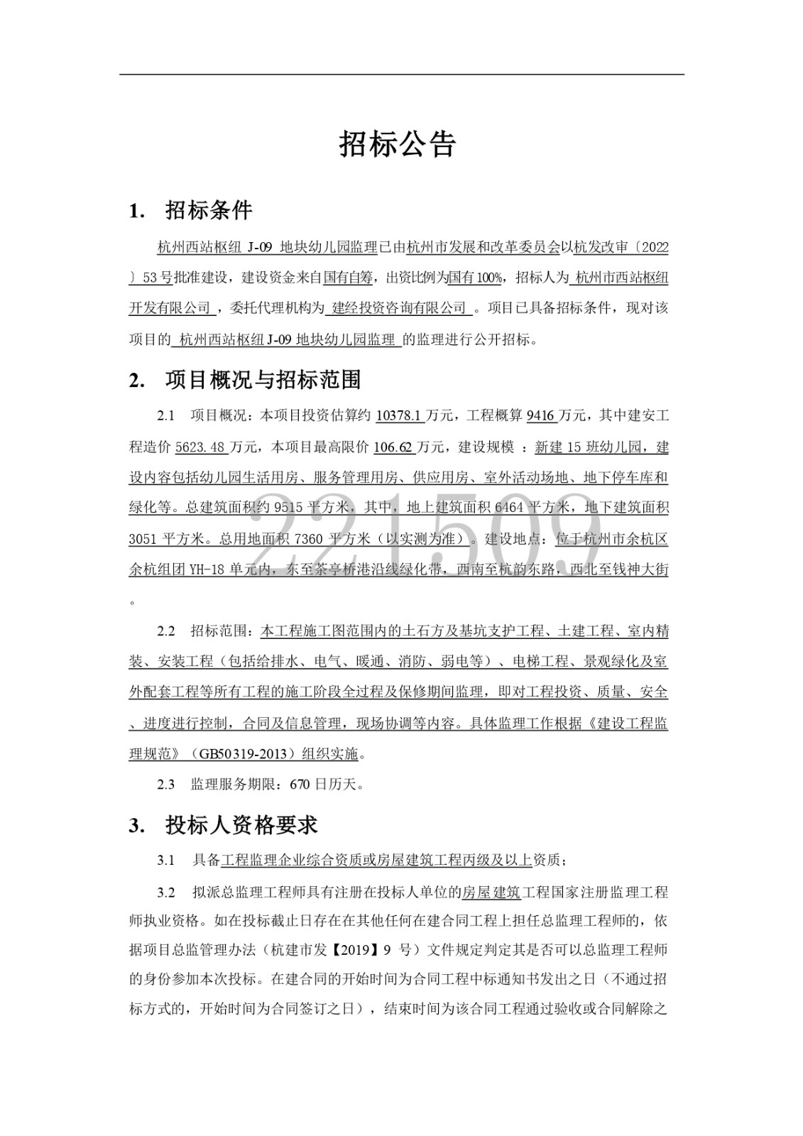 杭州西站樞紐 J-09 地塊幼兒園監(jiān)理招標公告