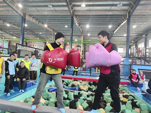 隨后,一系列富有挑戰(zhàn)性的團(tuán)隊(duì)任務(wù)接踵而至。團(tuán)隊(duì)競速卡丁車積分賽、蹦床投籃接力、獨(dú)木拳王等等一系列的任務(wù)需要員工們齊心協(xié)力,充分發(fā)揮每個(gè)人的優(yōu)勢。在緊張刺激的角逐中,我們見證了無數(shù)令人動(dòng)容的場景:有人奮力拼搏,力爭上游;有人默默付出,甘當(dāng)綠葉;有人鼓勵(lì)他人,傳遞正能量……這些溫暖的瞬間讓我們深刻體會(huì)到了團(tuán)隊(duì)的力量與合作的重要性。