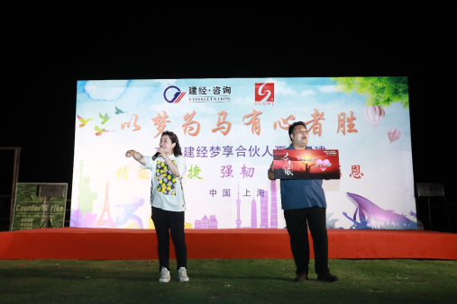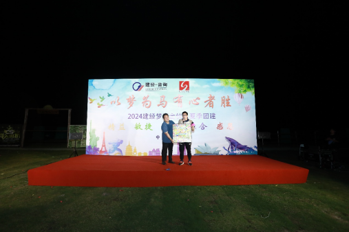 頒獎(jiǎng)儀式將晚會(huì)推向高潮,此次團(tuán)建共頒布三大活動(dòng)獎(jiǎng)項(xiàng):將“最佳教練獎(jiǎng)”授予趣然團(tuán)建公司,感謝他們對(duì)本次團(tuán)建流程順利推進(jìn)所付出的努力;將“最佳組織獎(jiǎng)”授予建經(jīng)&友康團(tuán)建組織團(tuán)隊(duì),表彰他們?cè)诨顒?dòng)的策劃、執(zhí)行中所做出的貢獻(xiàn);將“最佳團(tuán)隊(duì)獎(jiǎng)”授予團(tuán)建最佳表現(xiàn)團(tuán)隊(duì),鼓勵(lì)他們?cè)谌蘸蟮墓ぷ魃钪性賱?chuàng)佳績(jī)!