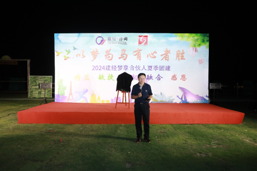 隨著團(tuán)建活動(dòng)的圓滿落幕,團(tuán)隊(duì)收到了來自建經(jīng)投資咨詢有限公司董事長(zhǎng)黃志挺先生從北京發(fā)來的視頻講話。董事長(zhǎng)雖未能親臨團(tuán)建現(xiàn)場(chǎng),但他的熱情和期望穿過夜空,透過音頻,跨越了空間的限制,溫暖了在場(chǎng)的每一位同事。