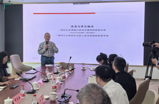 自國務院辦公廳于2017年發(fā)布《關于促進建筑業(yè)持續(xù)健康發(fā)展的意見》并首次提出“全過程工程咨詢”這一行業(yè)新概念以來,在國家多部委的政策支持下,在各省市探索實踐中,全過程工程咨詢已從概念走向實踐,成為推動傳統(tǒng)建筑業(yè)轉型升級、完善工程建設組織模式的重要力量。為了共同探討新質生產(chǎn)力視野下,全過程工程咨詢如何繼續(xù)推動行業(yè)變革、促進行業(yè)發(fā)展,6月8日,項目經(jīng)濟研究院在建經(jīng)投資咨詢有限公司上??偛颗e辦“學習交流會”。參加會議的有中國建筑學會工程管理研究分會名譽理事長、項目經(jīng)濟研究院院長、同濟大學丁士昭教授,德國鐵路集團專家薛秀鳳博士、中國建設工程造價管理協(xié)會標準學術部主任舒宇、中國建筑設計研究院有限公司總經(jīng)理助理、中國工程建設標準化協(xié)會工程咨詢專業(yè)委員會主任委員鄭迪、德國EDAG 集團朱峰博士、同濟大學李永奎教授、孫繼德教授、陳建國教授、建經(jīng)投資咨詢有限公司董事長黃志挺及建經(jīng)投資咨詢有限公司部分高層管理人員。