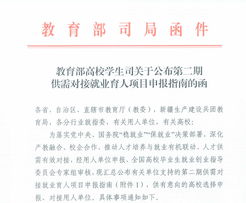 建經(jīng)投資咨詢有限公司于10月18日成功入選國家教育部高等學生司第二期供需對接就業(yè)育人項目用人單位名錄。入選項目分別為:定向人才培養(yǎng)培訓、就業(yè)實習基地、人力資源提升三大領域,主要專業(yè)涉及工程管理、工程造價、土木工程、 建筑、人力資源等。這標志著我司在工程咨詢領域的人才培養(yǎng)實力、提供高校學生成長平臺、人力資源規(guī)劃與發(fā)展、校企合作的深度與廣度通過了國家教育部高校就業(yè)司的評審。